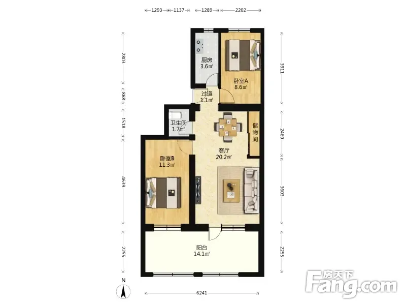 户型齐全,主打户型方正,明厨,客厅朝南,主卧朝南二居