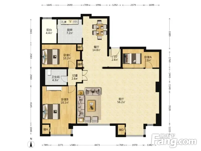 房屋拥有相对宽松的尺寸,布局通透,动静分离,设计豪华