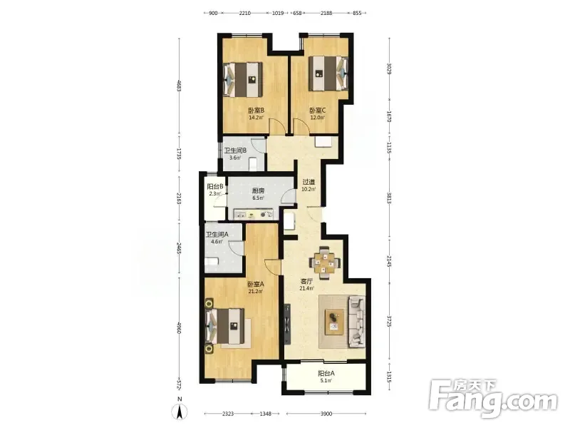 3室1厅2卫