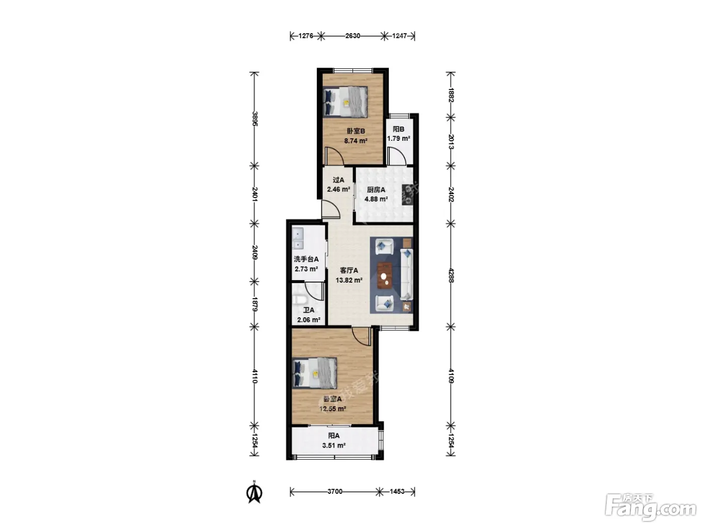 户型齐全,主打客厅朝南,双阳台二居