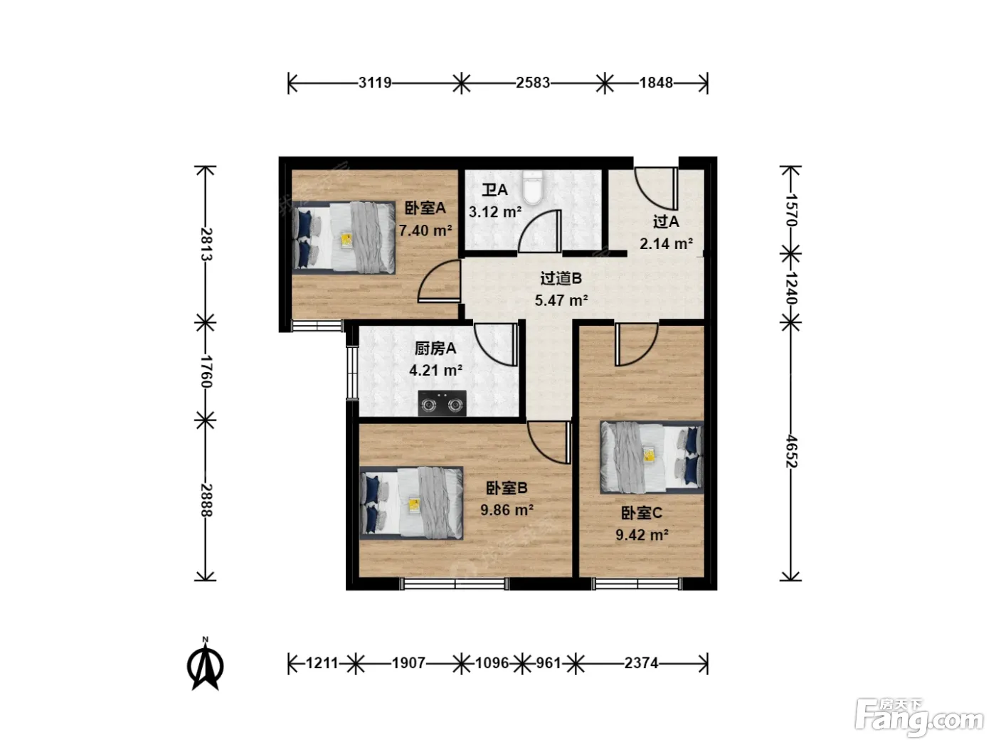 3室1卫