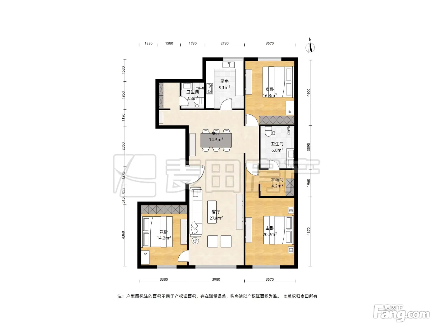 户型齐全,主打户型方正,明卫三居