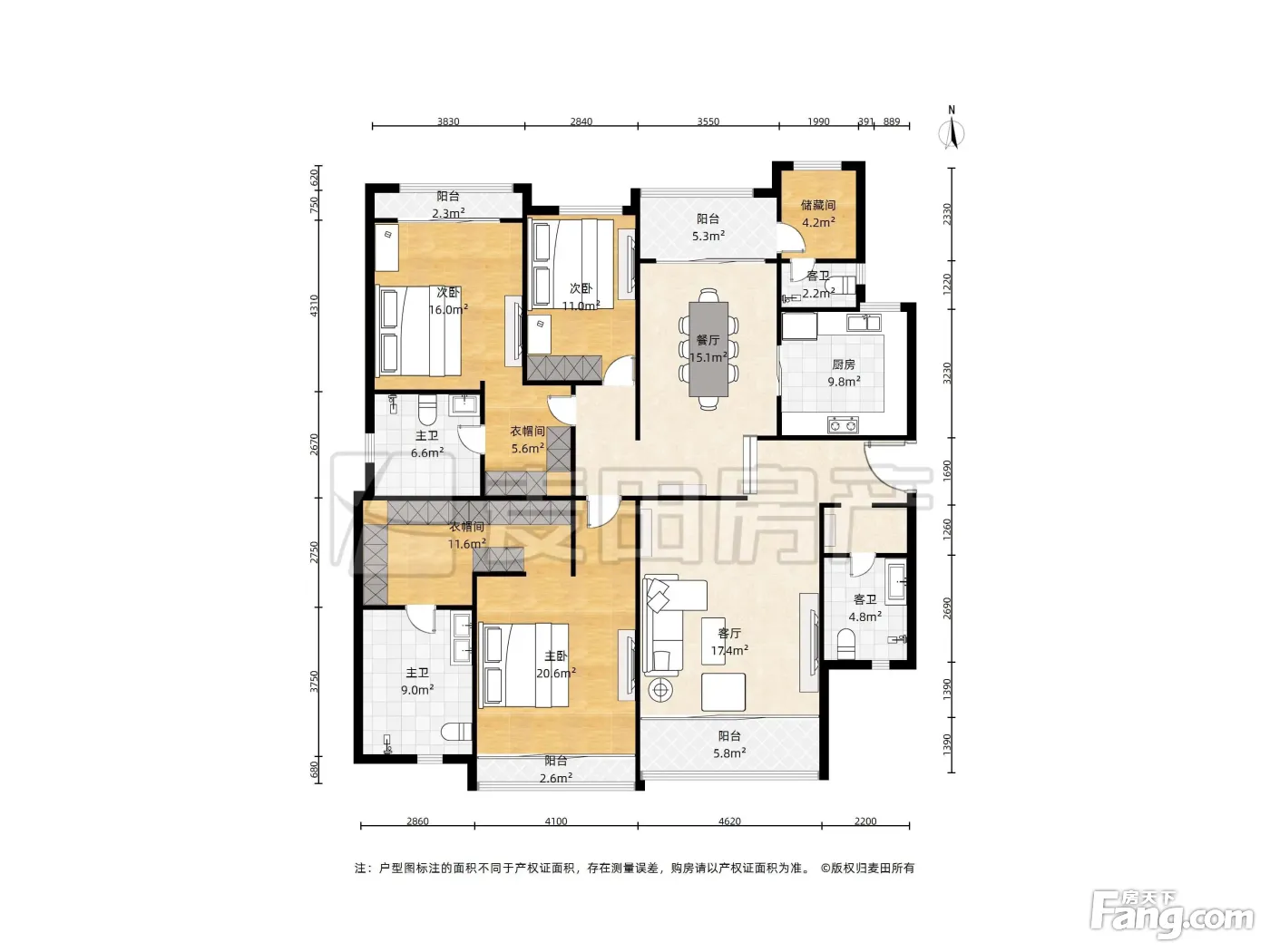户型齐全,主打户型方正,独立衣帽间,明卫四居