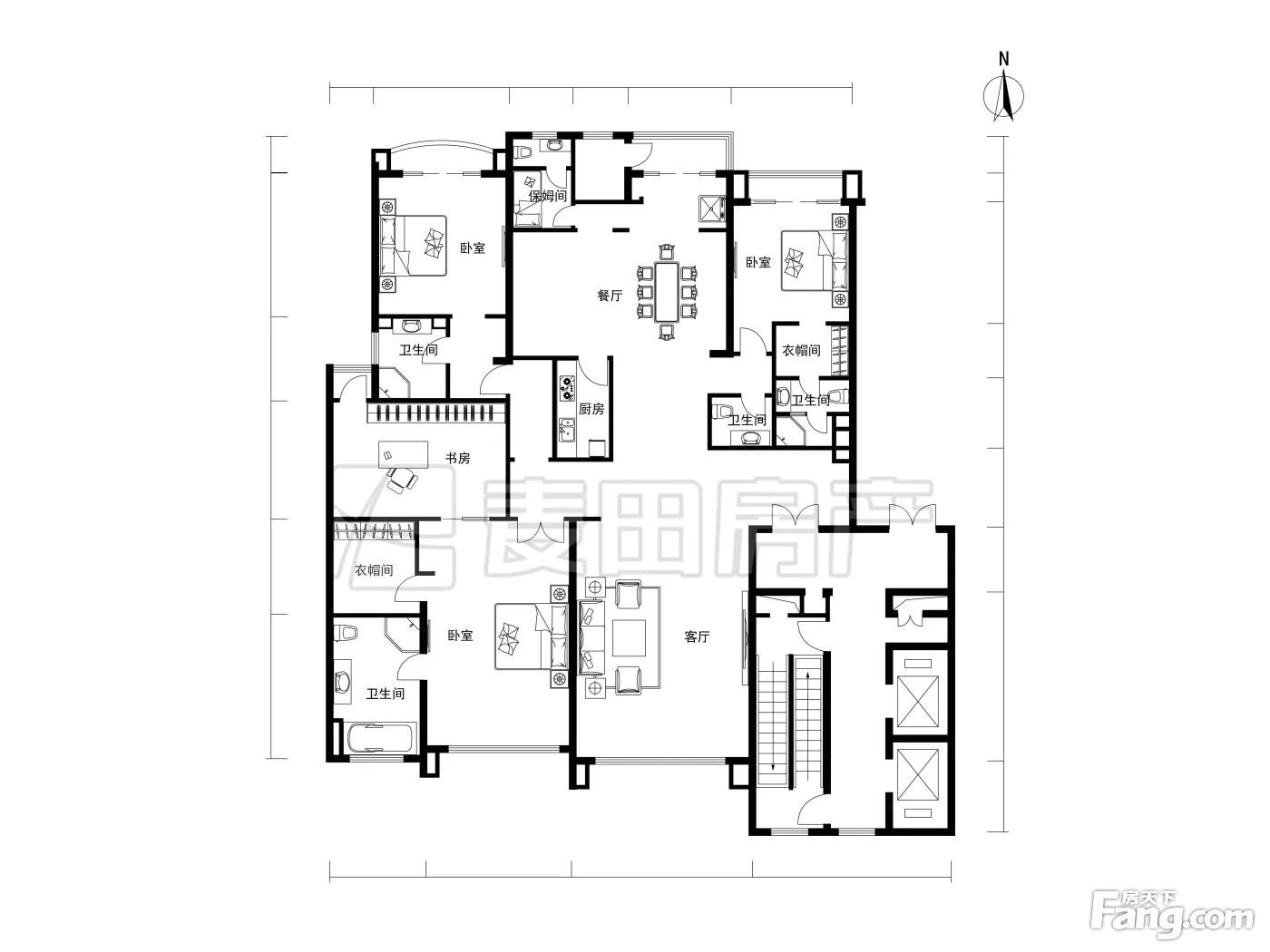 户型齐全,主打户型方正,独立衣帽间,明卫四居