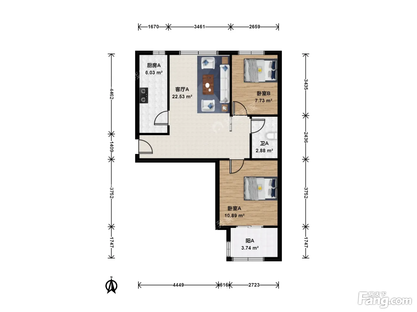 户型齐全,主打明卫,客厅朝南二居