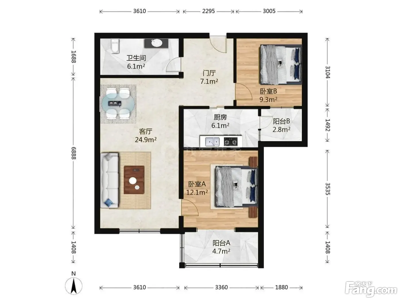 户型齐全,主打客厅朝南二居