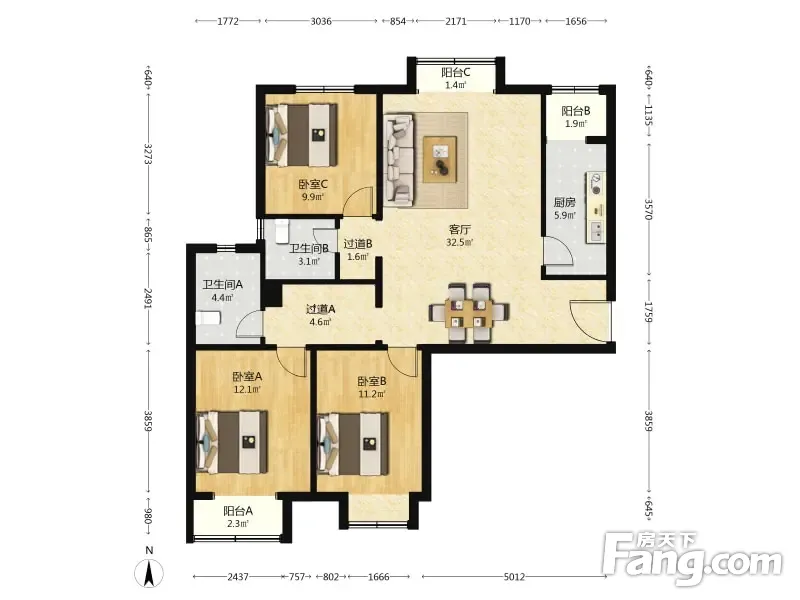 3室1厅2卫