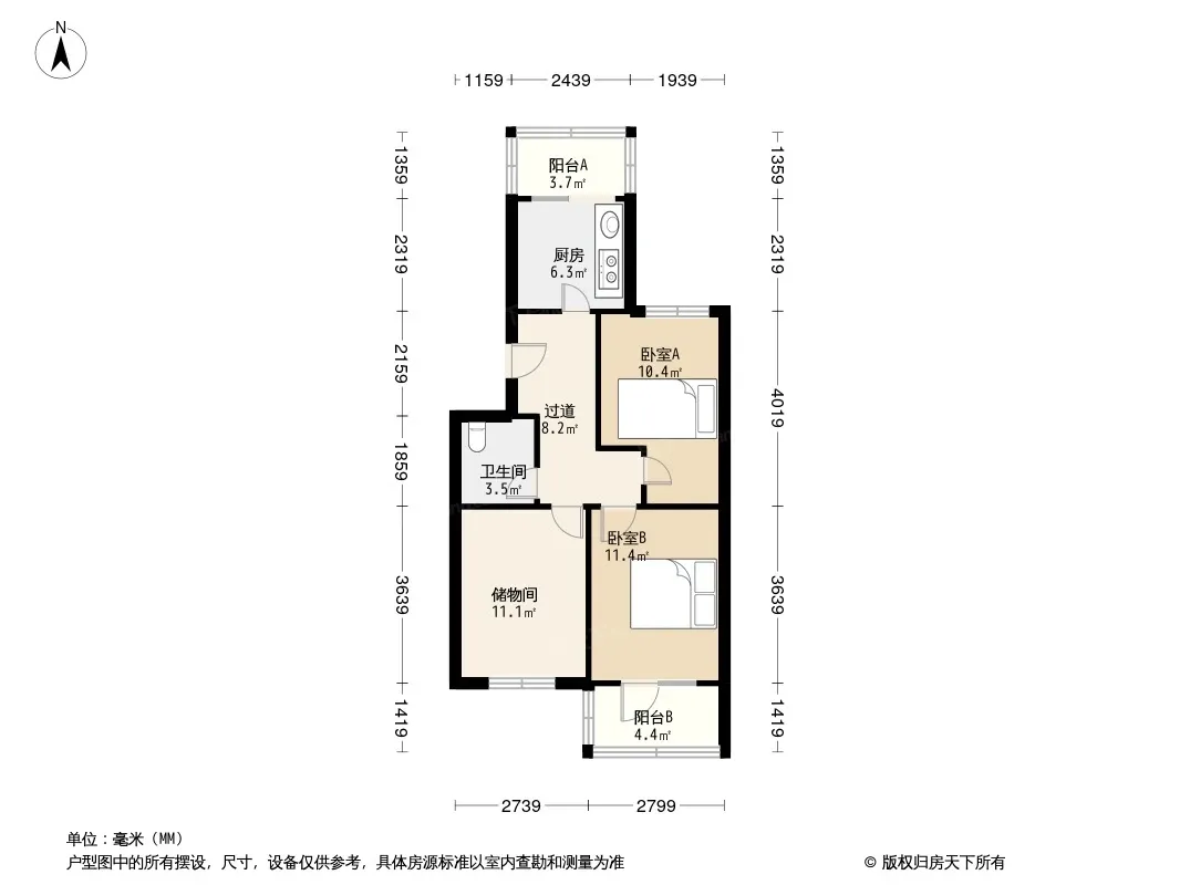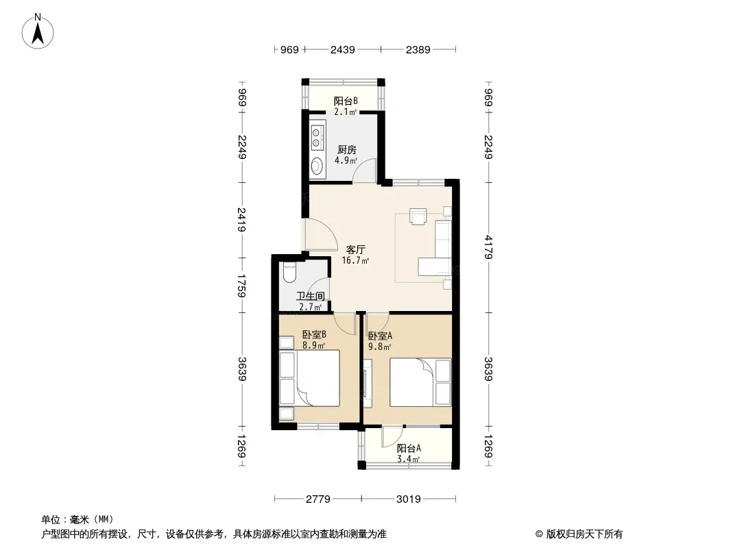 户型齐全,主打客厅朝南,双阳台二居