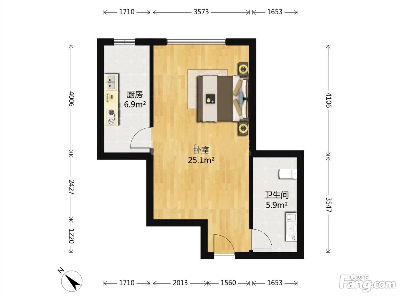 - 布局紧凑:通常进门是一个小过道,一侧是卫生间,另一侧是独立的厨房,再往里走就是客厅和卧室的一体化空间。这种布局使得各个功能区紧密相连,没有过多的过道浪费空间。