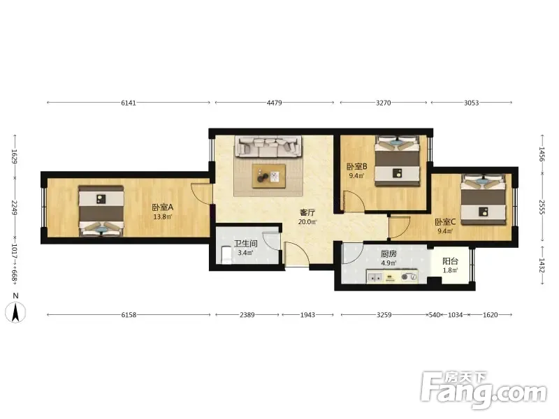 北街家园六区 3室1厅 88.01平
