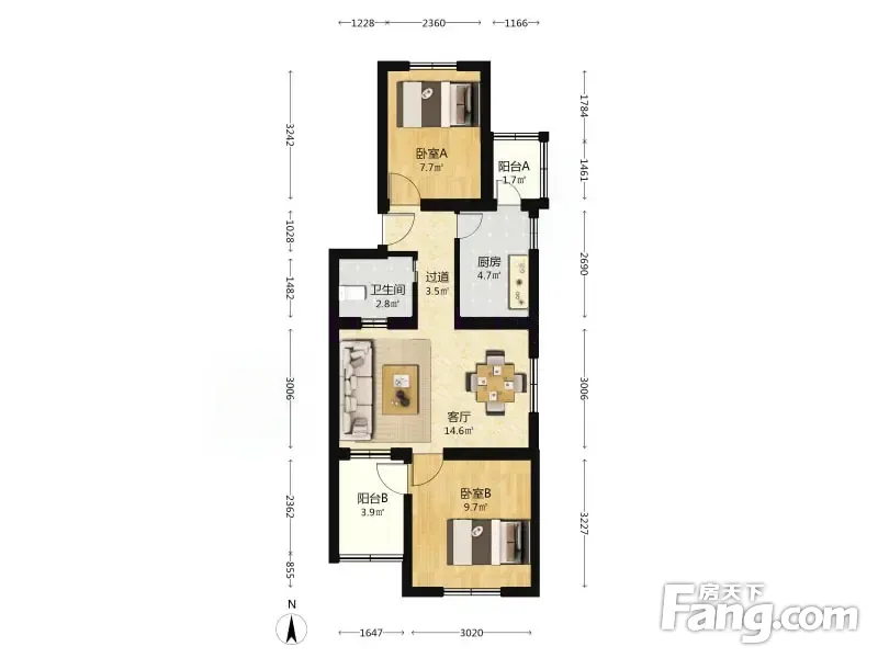户型齐全,主打户型方正,明厨,主卧朝南二居