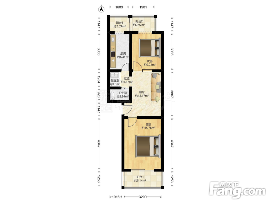 户型齐全,主打户型方正,明厨,客厅朝南二居