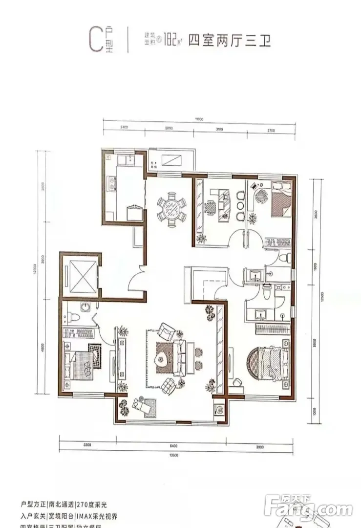 户型齐全,主打客厅朝南,主卧朝南三居