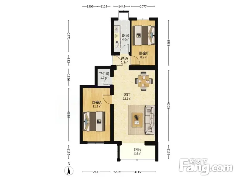 户型齐全,主打户型方正,明厨,客厅朝南,主卧朝南二居