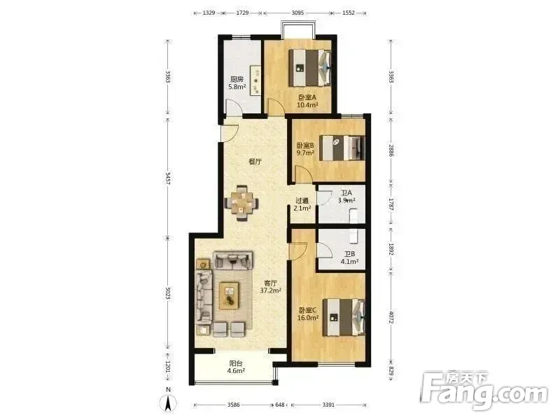 户型齐全,主打南北通透,干湿分离三居