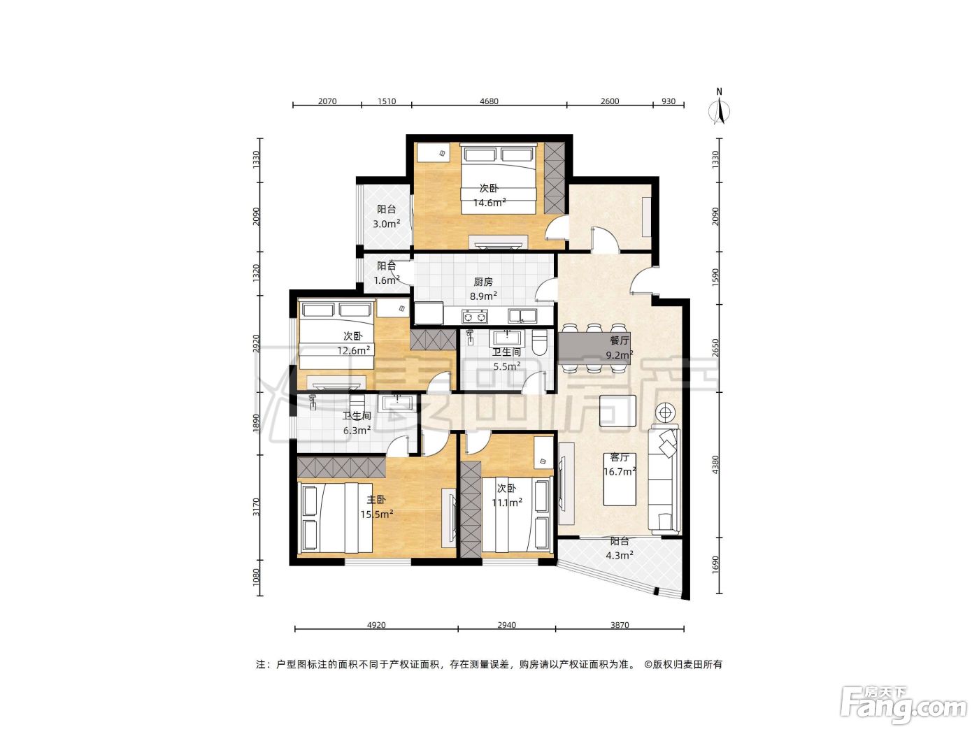 户型齐全,主打明卫,双阳台三居