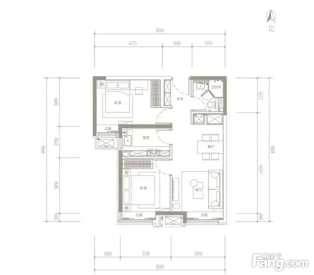 户型齐全,主打南北通透,客厅朝南二居