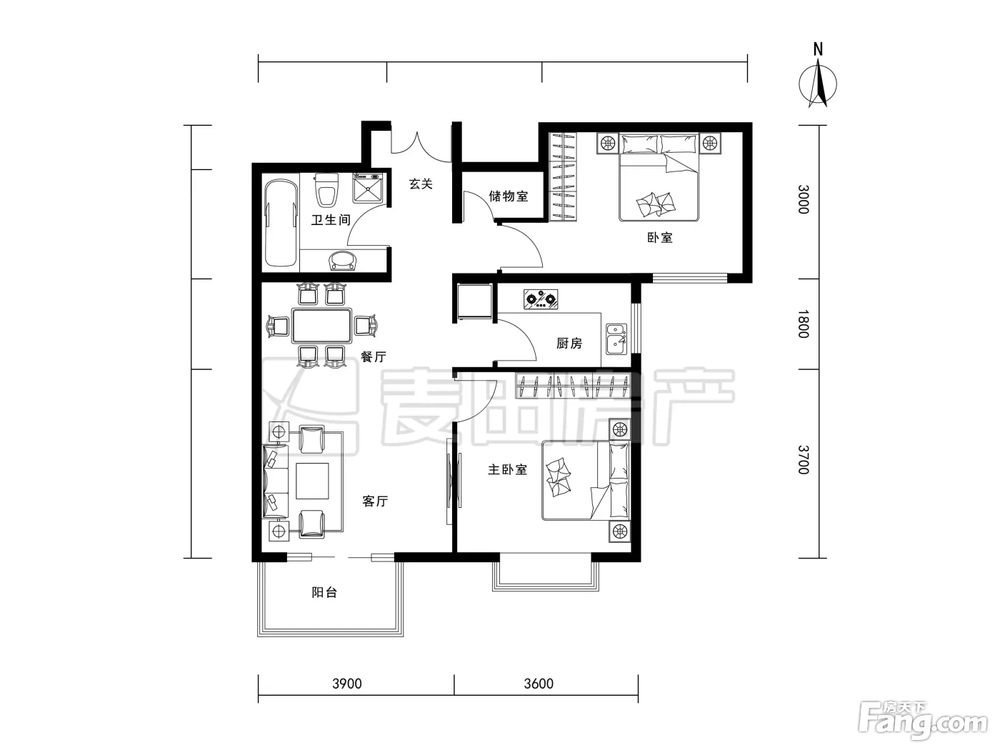 户型齐全,主打户型方正,明厨,客厅朝南,主卧朝南二居