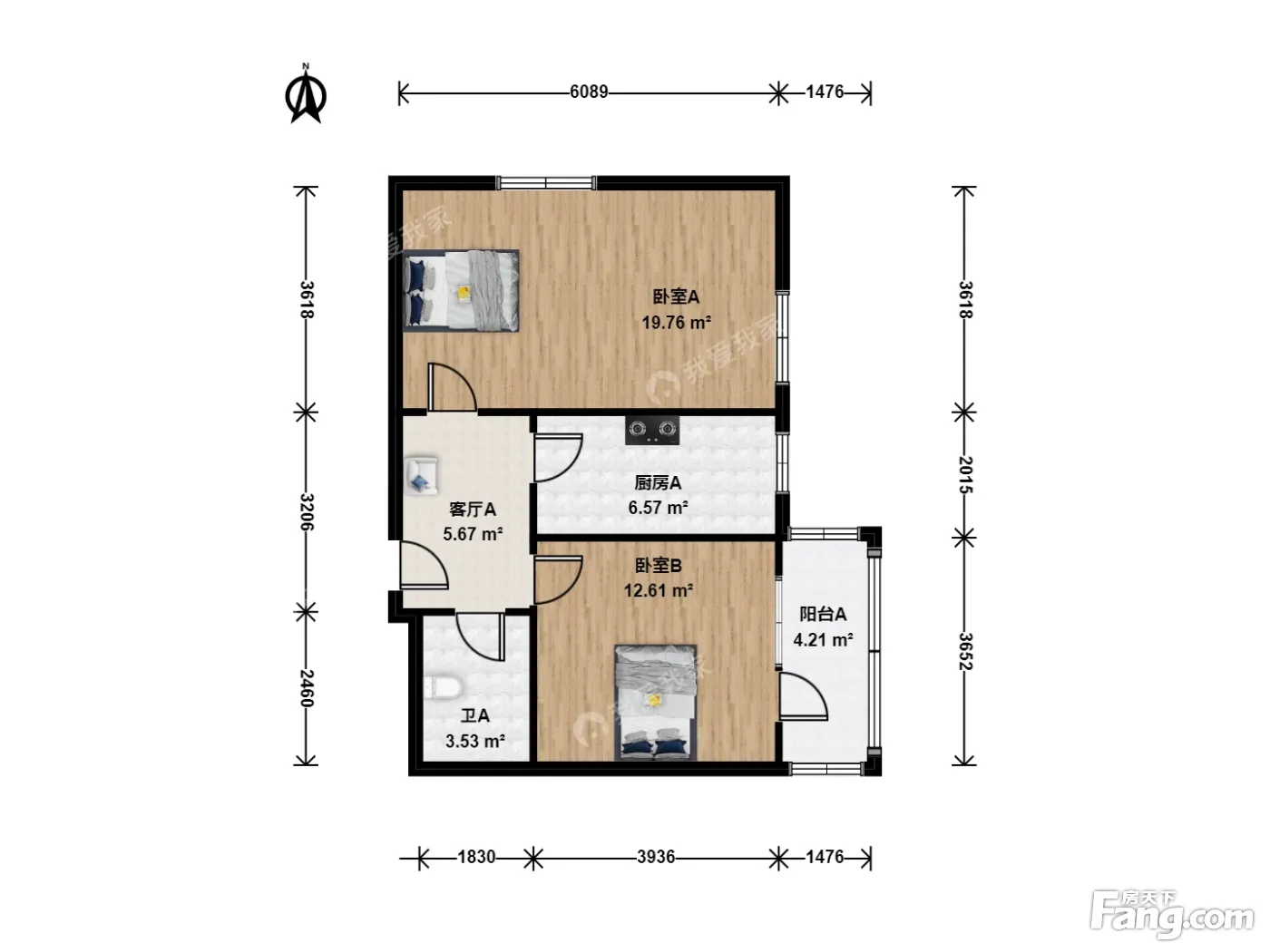 户型齐全,主打双卧朝南二居