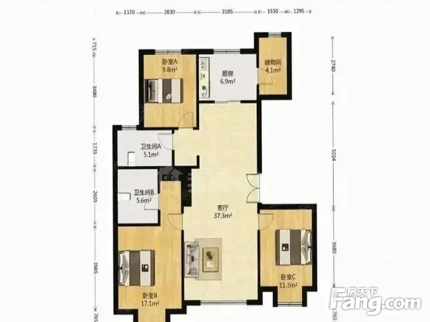 房屋拥有相对宽松的尺寸,布局通透,动静分离,设计豪华