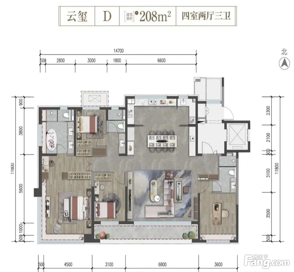 房屋拥有相对宽松的尺寸,布局通透,动静分离,设计豪华。