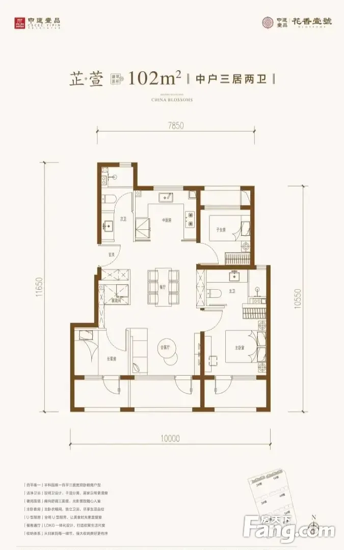 户型齐全,主打南北通透,主卧套间,干湿分离三居