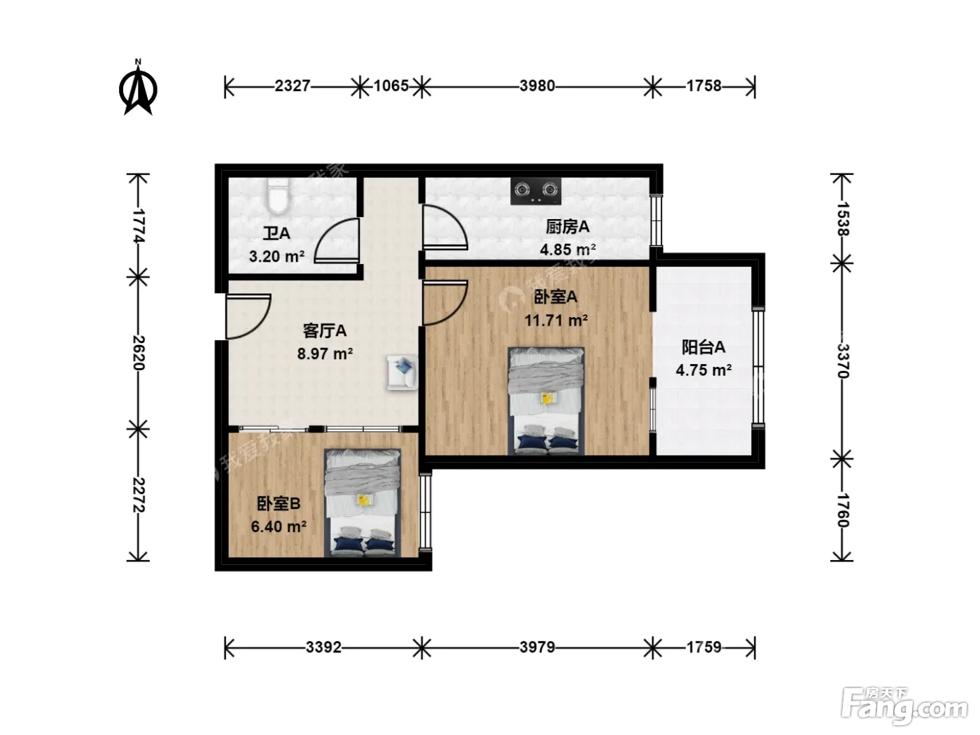户型齐全,主打明厨,客厅朝南二居