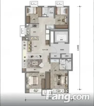 房屋拥有相对宽松的尺寸,布局通透,动静分离,设计豪华