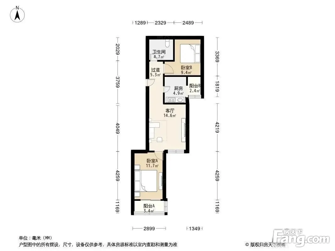 户型齐全,主打明厨,客厅朝南,双阳台二居