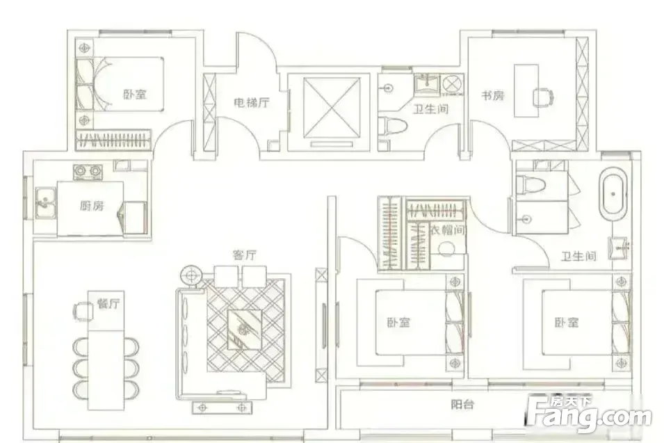 户型齐全,主打南北通透,客厅朝南四居