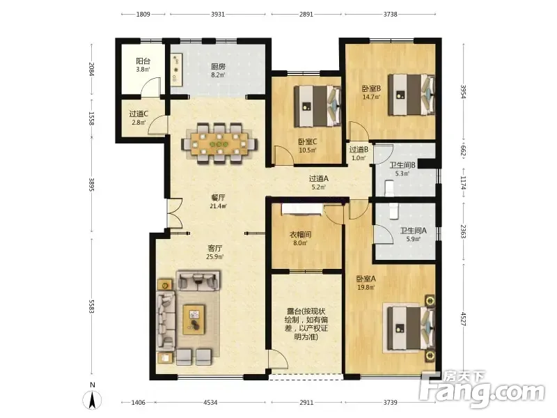 户型齐全,主打户型方正,独立衣帽间,客厅朝南四居