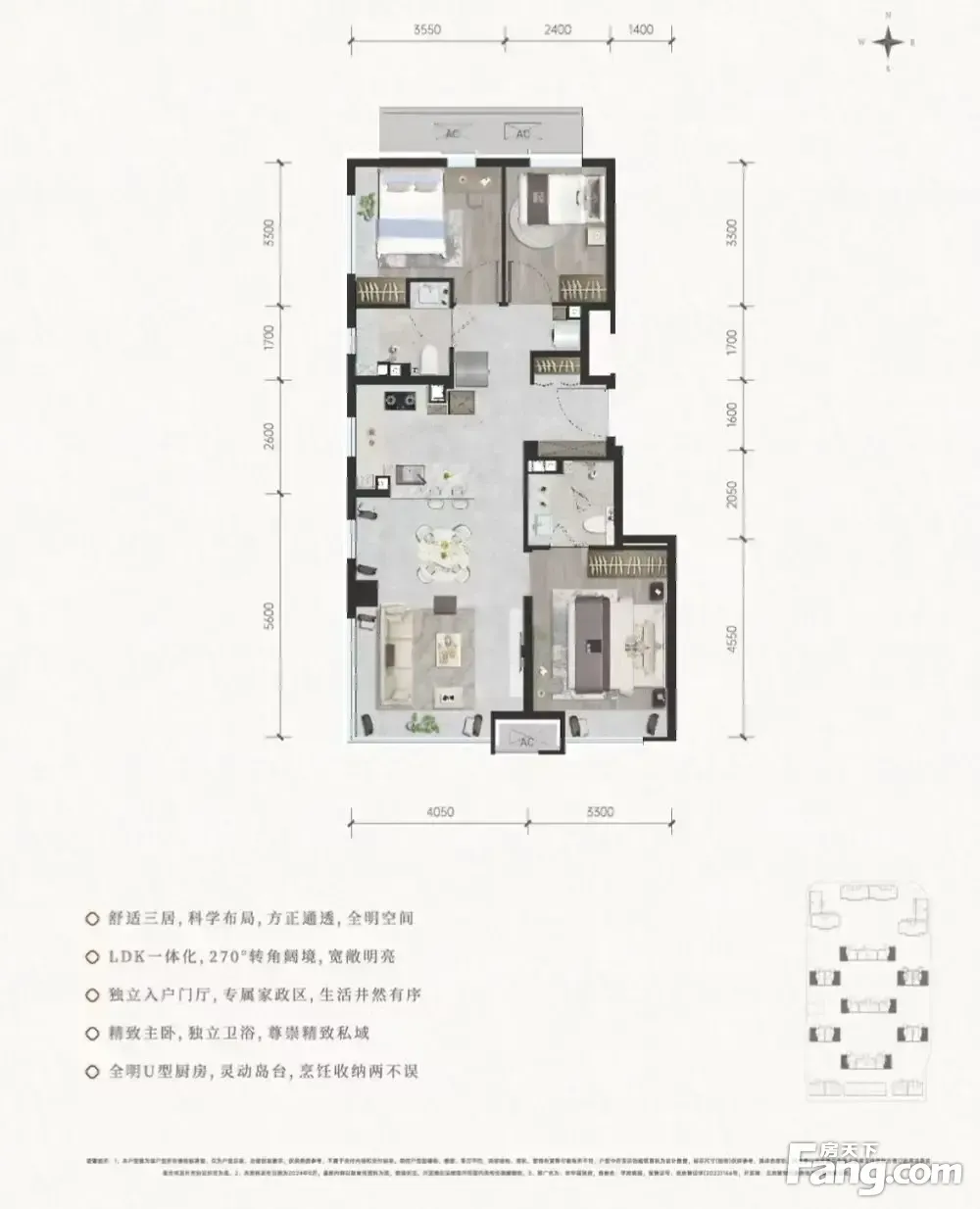 房屋拥有相对宽松的尺寸,布局通透,动静分离,设计豪华