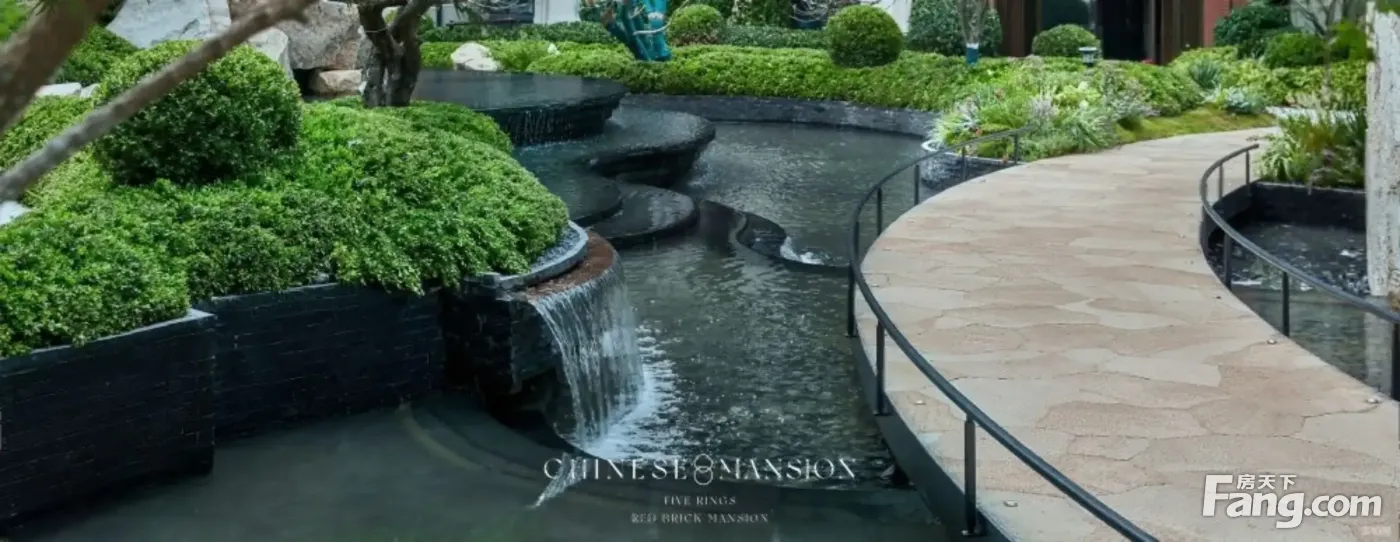 约8000方低密园林实景呈现, “见山”“见水”“见乐”“见宅”,再现当代大家园林。 沿袭中国 建筑精粹,融贯传统人文风雅意趣,与自然透叠之韵,纳生活艺术与精神,以大师生活为蓝本,打造三进礼序,亭廊楼台,曲径浓荫的生活园志。 高阁门仪:约45米社区入口门庭,府承高门阔院,渐次延伸,呈门楣高仪。 叠山理水:引水入园,镜面水景配以府式生活的绿园装点,予自然悠闲主张。 府艺八境:集山、石、水、植物等要素,绿树浓荫赋闲情逸致,皆相映成趣。