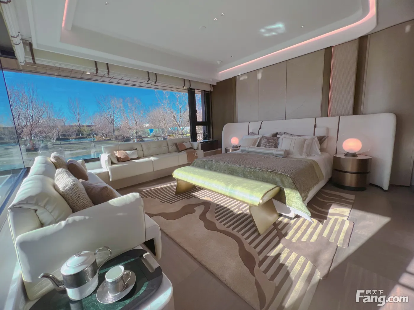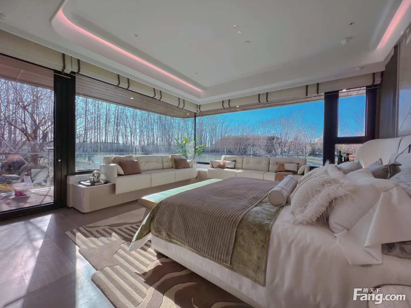 以“无墙无柱”的玻璃对玻璃构造,打造“主卧全景舱+客厅全景舱”,实现约23米的总采光面,带来360°IMAX巨幕环景视野,重新定义居住的视野价值。 双主卧系统:创新“南北双主卧区”设计,除北向主卧套房外,南向尊亲房同样按主卧规格打造,让三代人各有其尊贵主场,实现家族共居的范式。