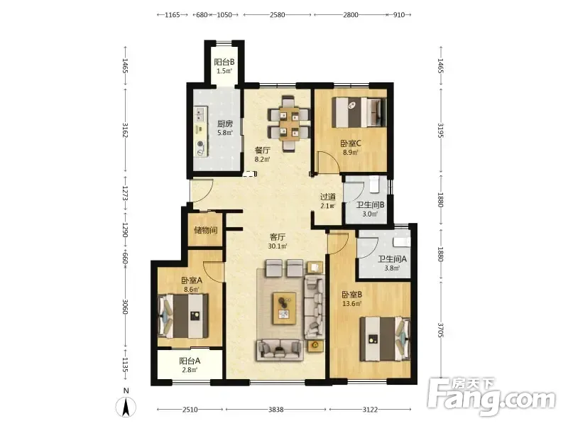 户型齐全,主打户型方正,明卫三居