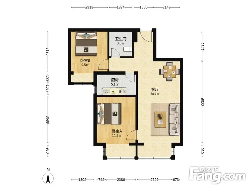 户型齐全,主打户型方正,明厨,客厅朝南,主卧朝南二居