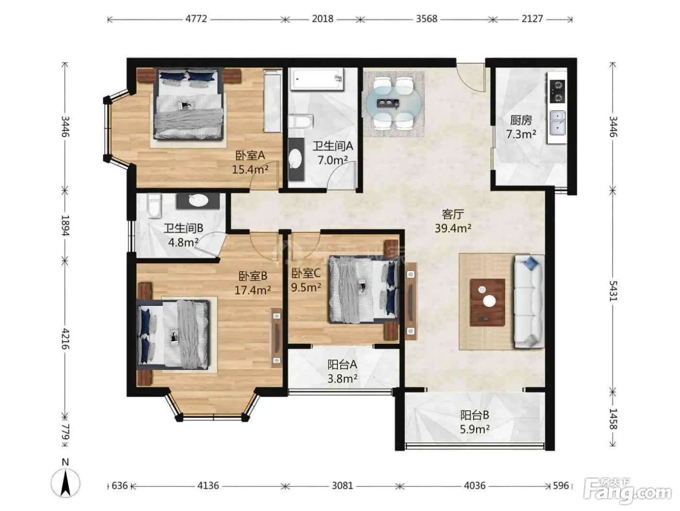3室1厅2卫