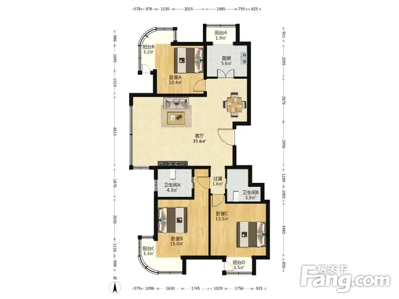 3室1厅2卫