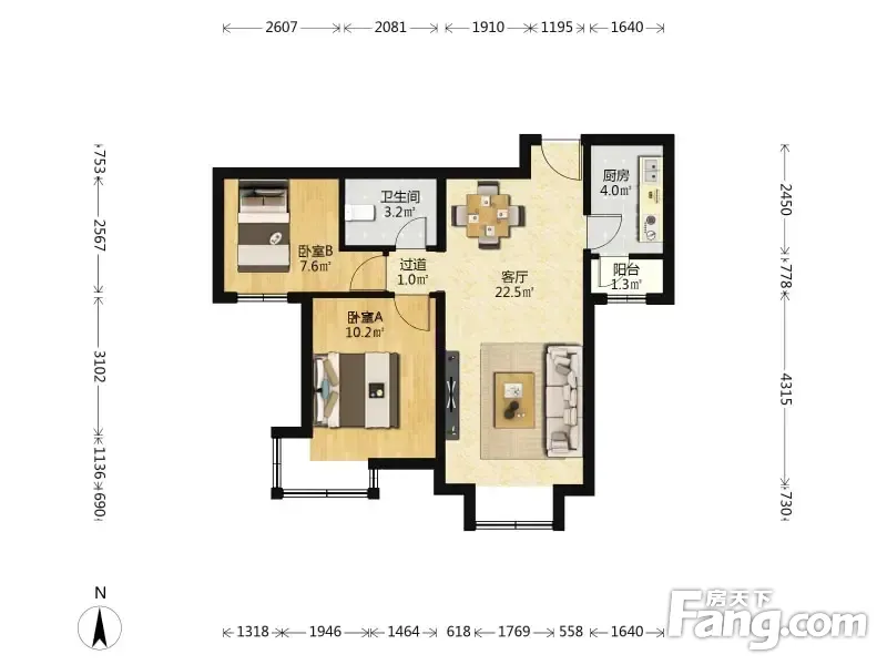 户型齐全,主打户型方正,明厨,明卫,客厅朝南,全明格局,主卧朝南二居