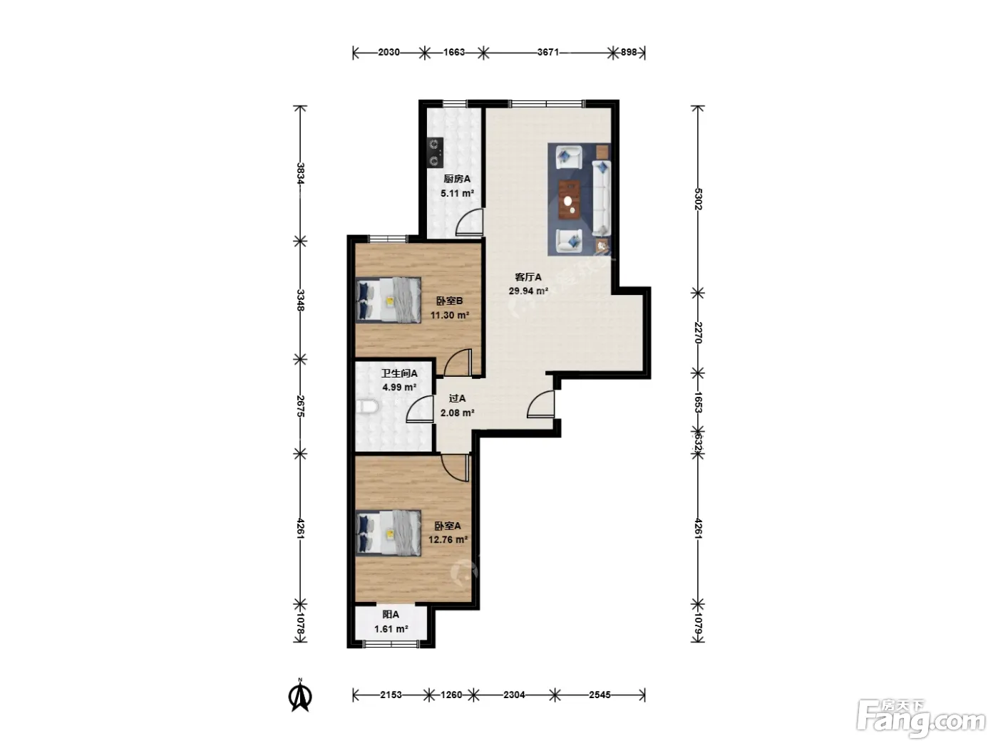 晓月苑五里南北通透的两居,