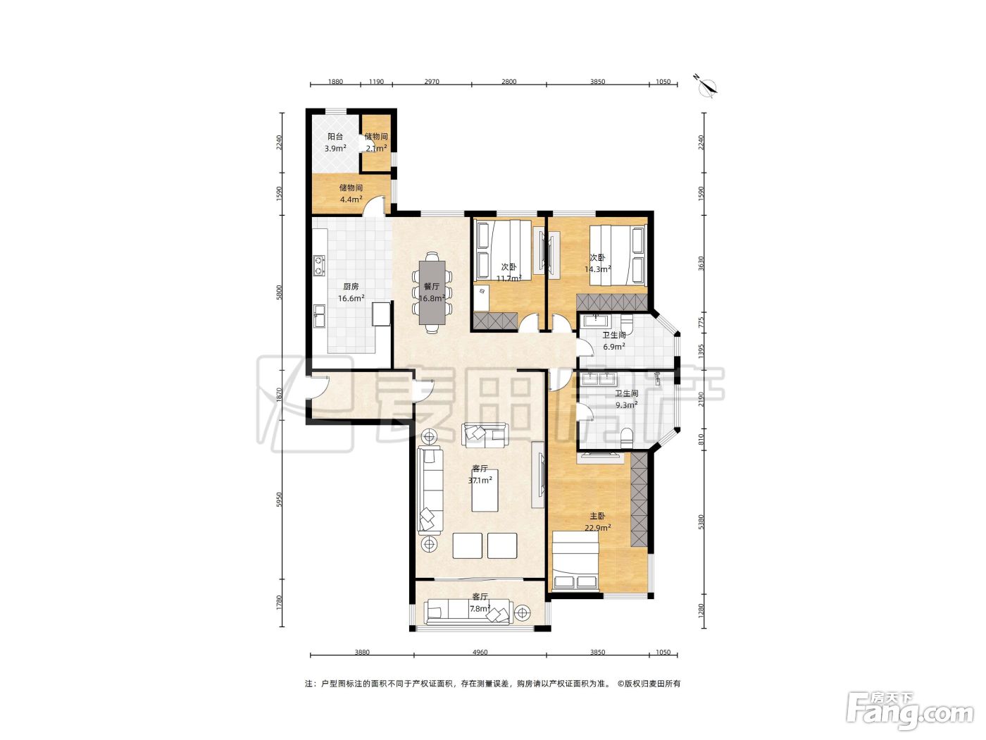 户型方正,客厅有40平米 两个卫生间都是明的 采光视野好