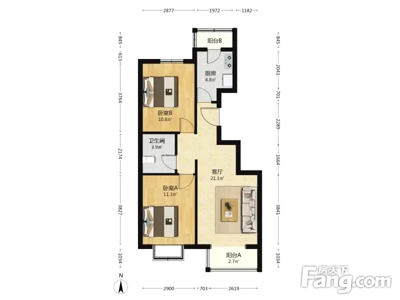 康泰园 2室1厅 81.79平 南北通透户型方正落地窗大阳台