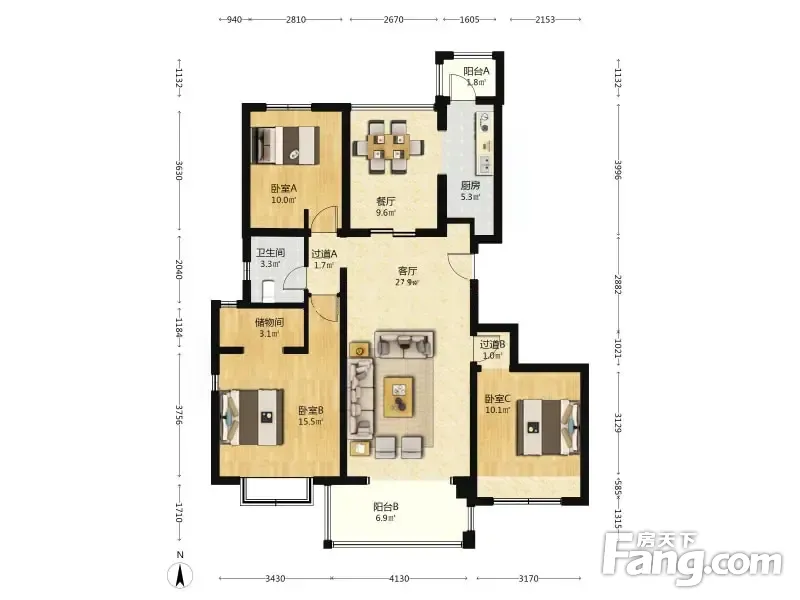 青秀城 南北通透三居 花园洋房 三阳开泰 明厨明卫 中层