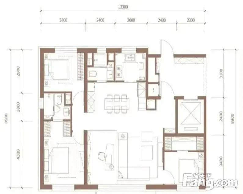 房屋拥有相对宽松的尺寸,布局通透,动静分离,设计豪华