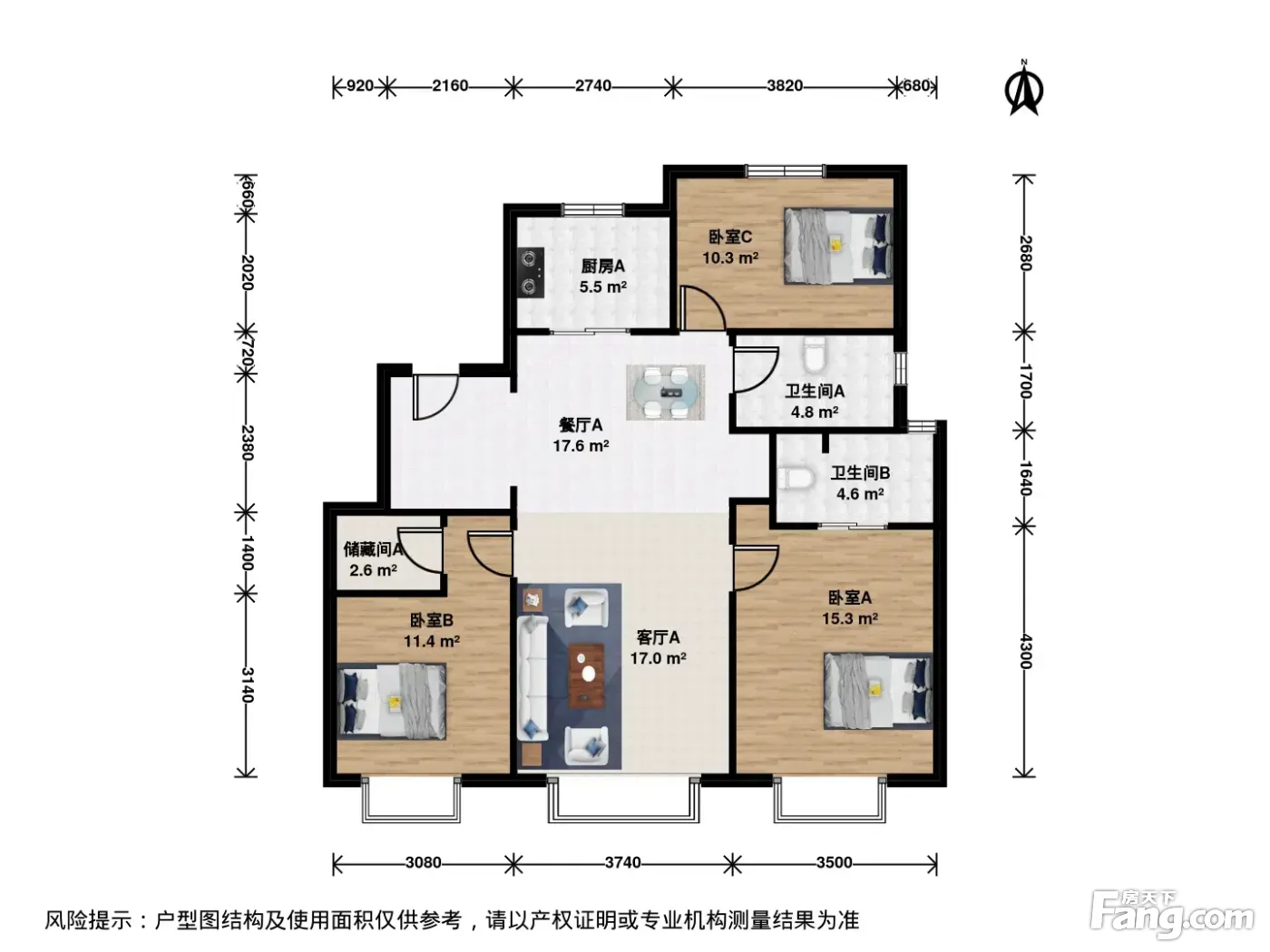 户型齐全,主打南北通透,全明格局三居