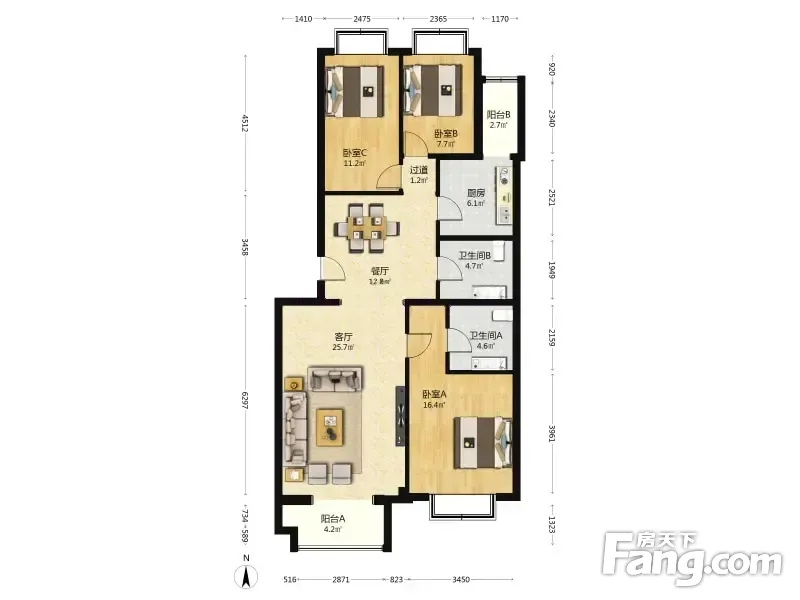 郁花园一里 3室2厅 123.11平 南北通透户型方正采光好