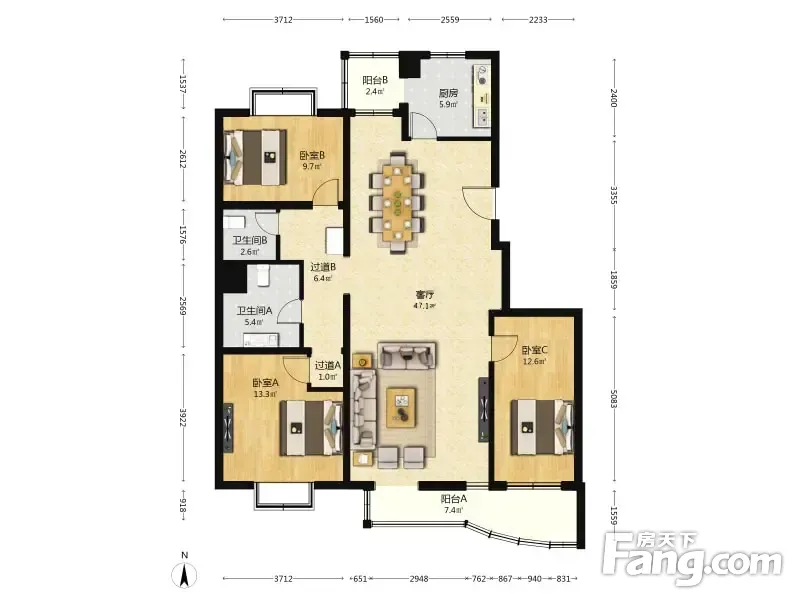 3室1厅2卫
