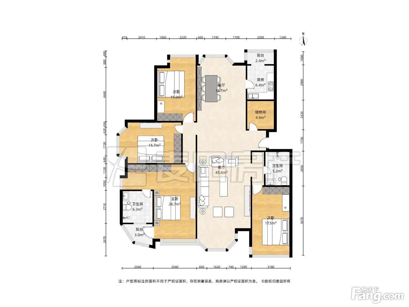 户型齐全,主打独立衣帽间,主卧朝南四居