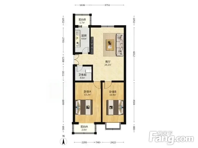 天骄俊园9号院 南北通透电梯大2室 85.27平 户型方正