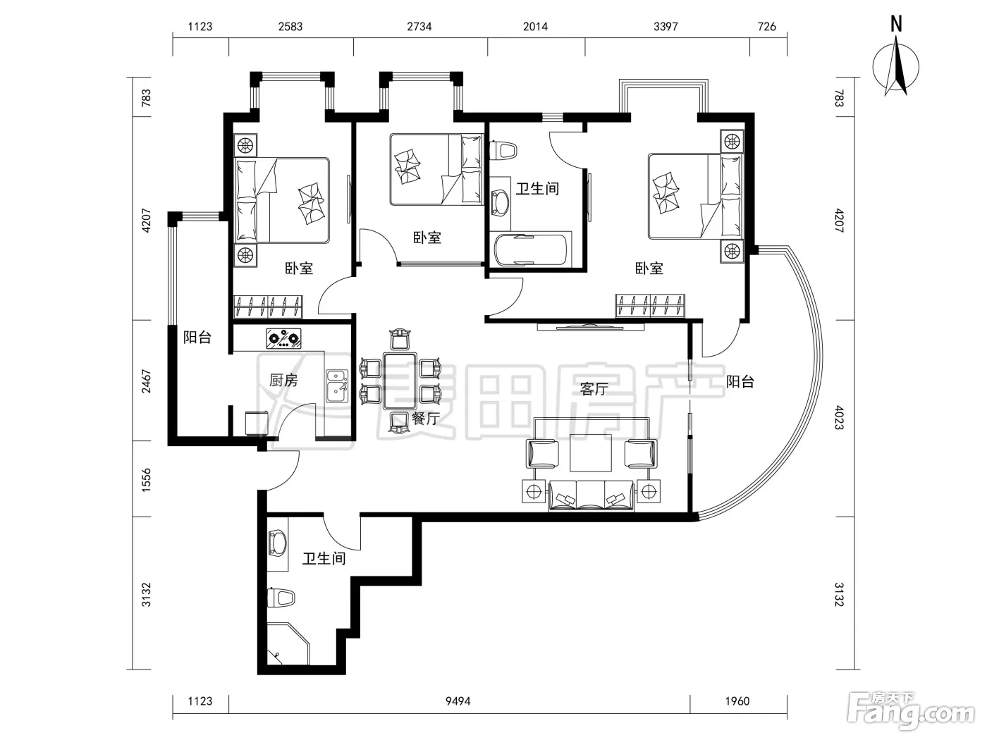 3室1厅2卫